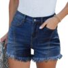 Women Summer Irregular Waist Jean Shorts with Pockets Frayed Ripped Holes Cute Sexy Hot Mini Denim Shorts