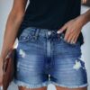 Women’s Casual Summer Denim Shorts Mid Waisted Stretchy Ripped Jean Shorts with Pockets